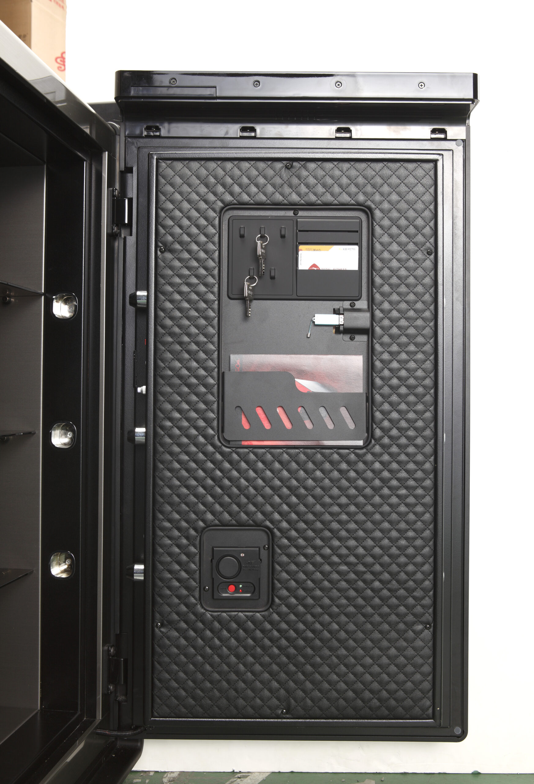 | Physical Locks | 5 solid steel live locking bolts + 3 deadbolts. Hidden hinges. Glass relocker. Auto-lock when door closes. |